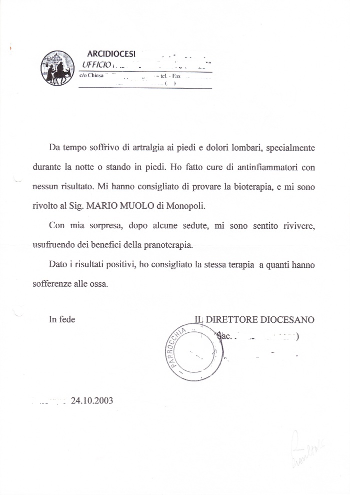 Poi qualcuno mi fece il nome di Mario Muolo. Così, presa dalla disperazione ma anche dalla speranza di guarire dal mio male oscuro e con la certezza che non propinava alcun medicinale verso i quali provavo e provo una certa diffidenza e riluttanza, formai una piccola comitiva e andammo a trovarlo.