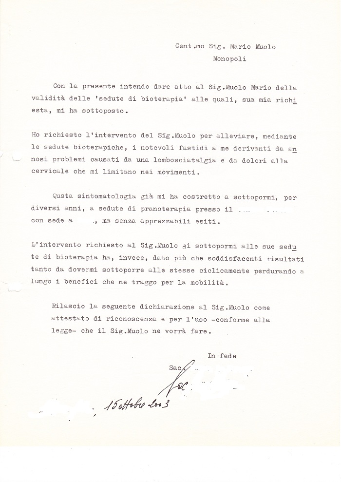 Chiar.mo Sig. Mario Muolo