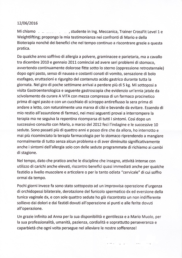 Dalle mani del bioterapeuta Mario un supplemento di calore umano per il mio corpo infreddolito.