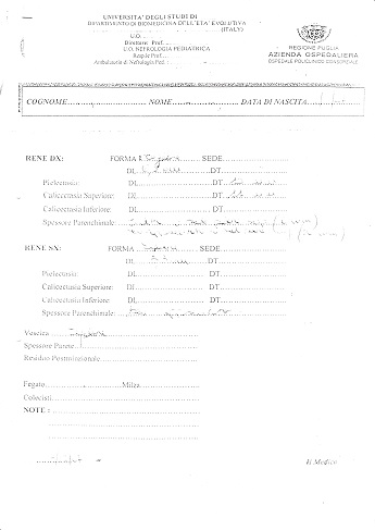 La sottoscritta … … … madre di … … … nato il … -  … - 07 con una pielectasia a dx, ha riportato un notevole miglioramento di restringimento renale grazie alle cure praticate dal bioterapeuta Mario Muolo, che dopo alcune sedute già c’è stato un netto e progressivo miglioramento.