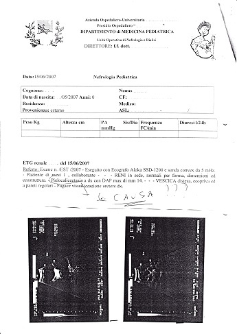 "... una pielectasia a dx, ha riportato un notevole miglioramento ..."